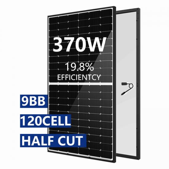 HETECH czarna ramka pv moduły z 9bb perc mono ogniwa słoneczne, produkowane przez perc połowa pv technologia ,czarne panele słoneczne o wysokiej wydajności 360 w 370 w powszechnie stosowany w systemie energii słonecznej i komercyjnej elektrowni słonecznej, zakres mocy pojedynczego panelu słonecznego 360 w-370 w oparty na 120 półkomórkach.