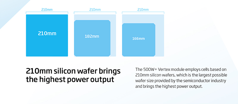 Dzięki dużym płytkom krzemowym o wymiarach 210 mm x 210 mm i monokrystalicznym ogniwom PERC nowe panele umożliwiają uzyskanie dużej mocy wyjściowej wynoszącej ponad